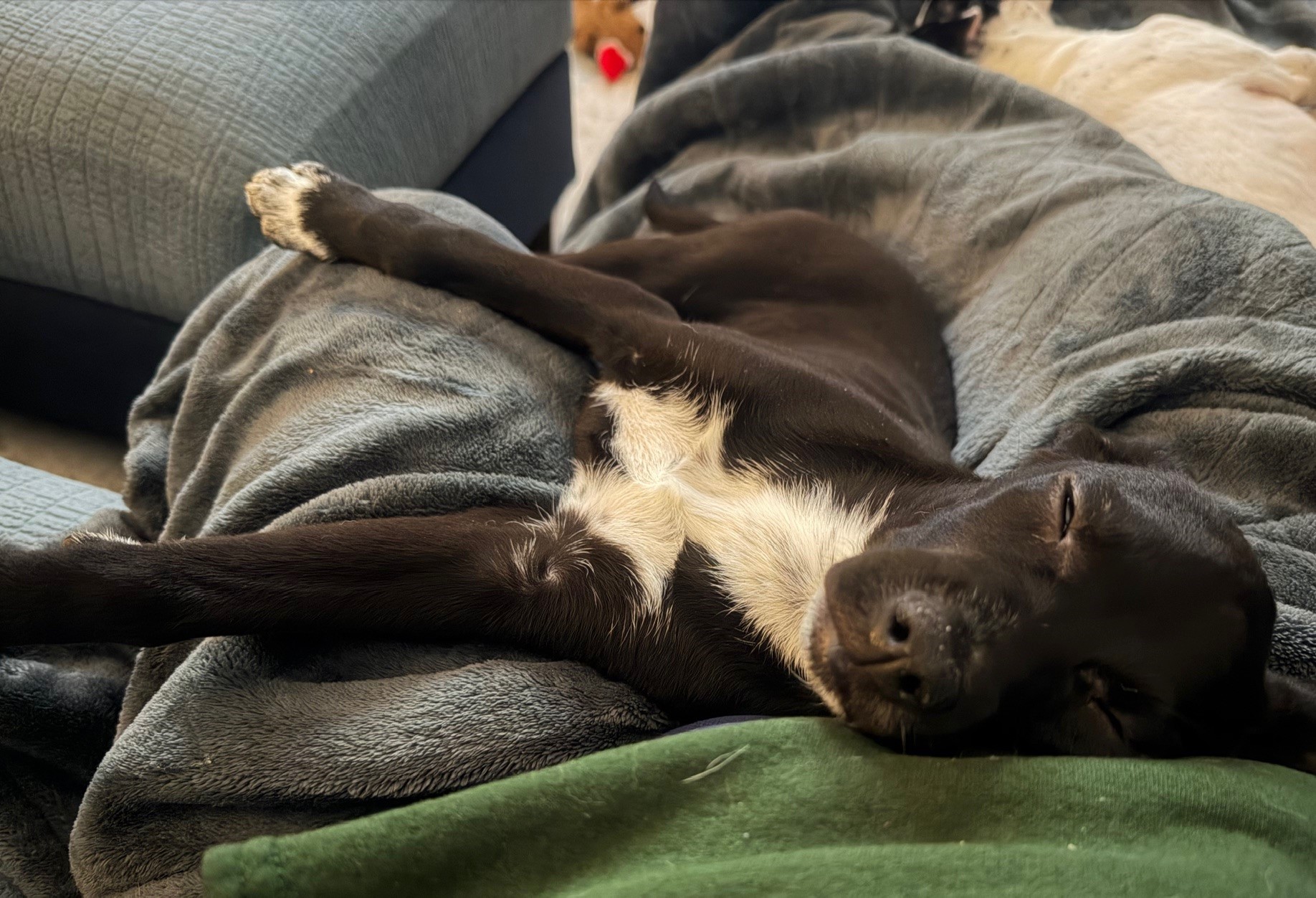 She’s crate trained and doing great with house training, which is impressive for a baby her age. She adores other dogs and would love a playful canine buddy to show her the ropes. Meg is already learning “sit” like a little scholar and is working on leash walking. She can be a bit nervous on walks right now, but with patience and encouragement she blossoms more every day.
