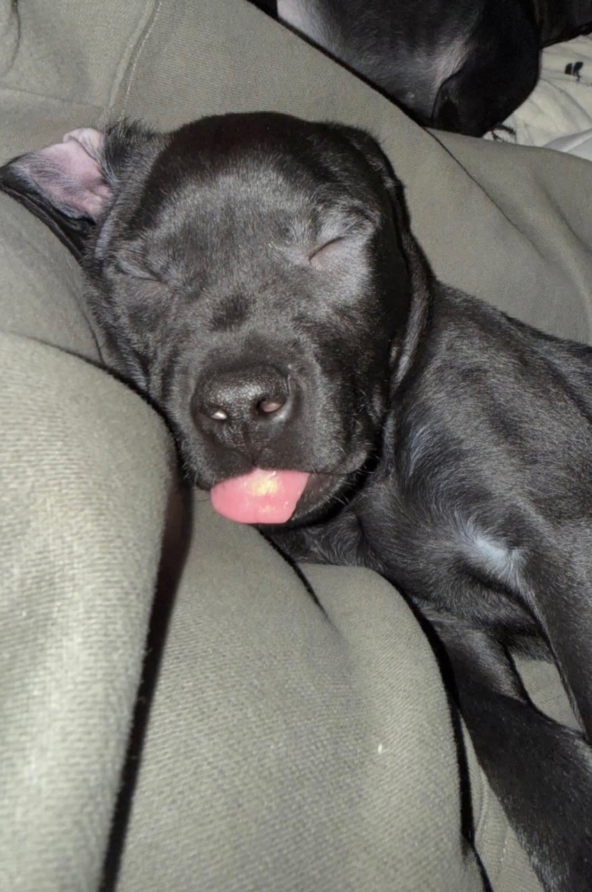 Sigma's mom (Pearl) was saved by the rescue when she was extremely pregnant facing euthanasia in a rural shelter. Sigma and her siblings were luckily born in a safe foster home and showered with endless love. Sigma may be shy at first, but he opens up quickly once he feels comfortable. His overall demeanor is chill and calm; he plays hard but then follows it up with a nap with his humans.