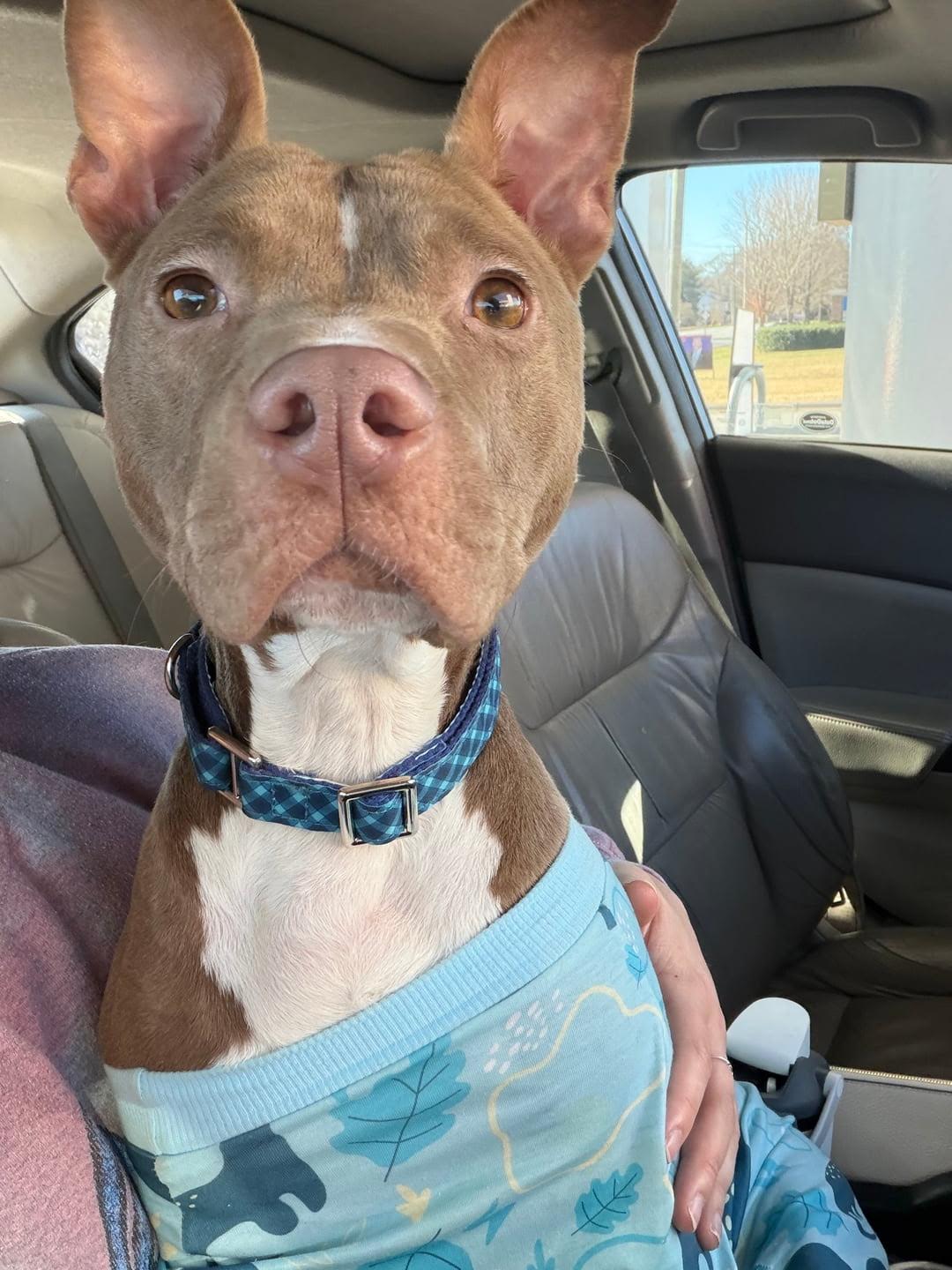 He knows sit, he pulls on a leash but settles down quickly and is good at checking in with you on walks, and he is very quiet in a crate! The goofiest boy and so so loving