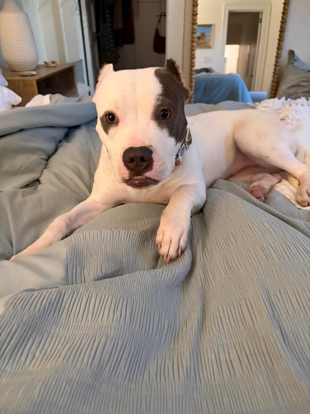 Lois found herself in an overcrowded shelter our in SC. we were there visiting and pulled her and her brother out .She is the sweetest happiest girl with the most perfect underbite. she is so goofy and so happy and would love a family that she could call her own she promises to keep you smiling