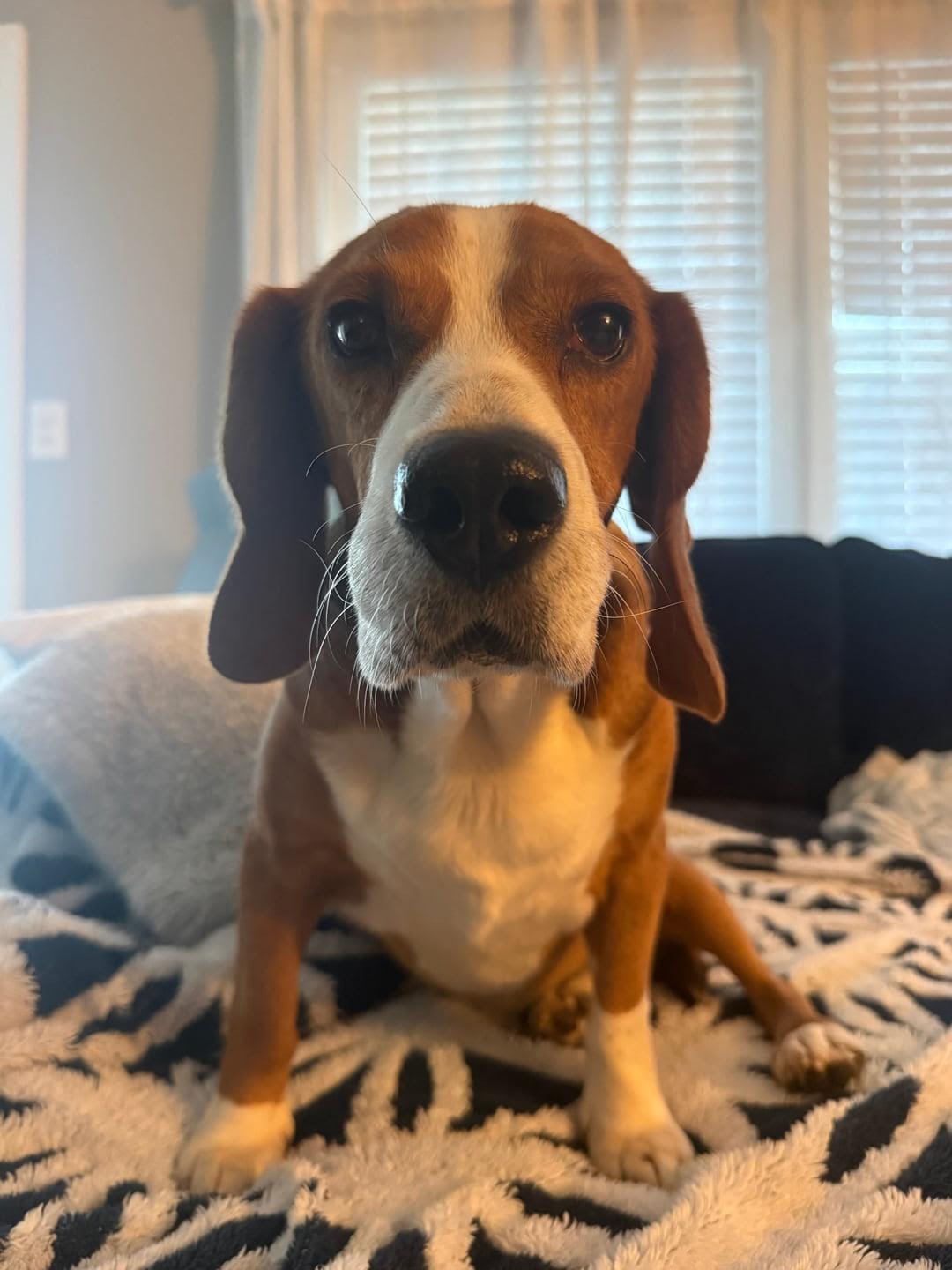 He's like a little old man! Sometimes you forget he's there with how much he sleeps. He LOVES food. I don't ever see him move as fast as he does when it's dinner time and after dinner zoomies. He loves his four legged friends and he loves the most to cuddle on the couch. The look he gives you with his sad beagle eyes will get you every time - he is going to make his future family super happy
